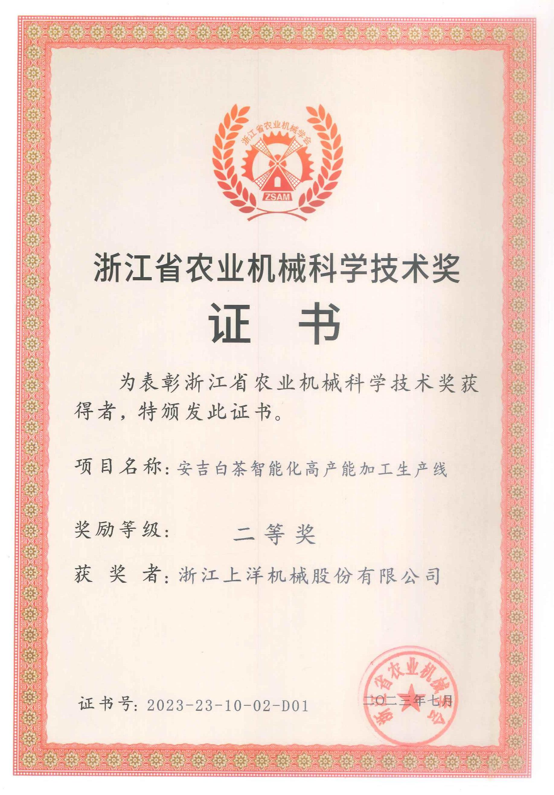 2023年浙江省農(nóng)業(yè)機械科學(xué)技術(shù)獎二等獎