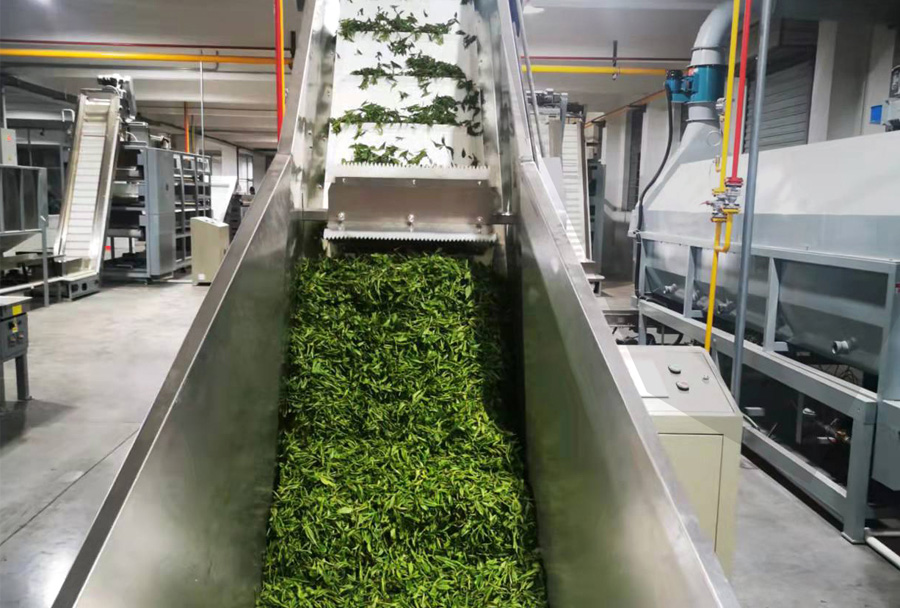 茶葉輸送機是茶葉加工生產線的重要組成部分,分皮帶式、振動槽式等,可平面輸送、高低錯位輸送,根據(jù)需要再配套勻葉、清理、調速、除塵等裝置,在整個生產線中起到連接主機、控制產能、平衡流量等功能,是生產線實現(xiàn)不落地、清潔化生產必不可少的配套設備。